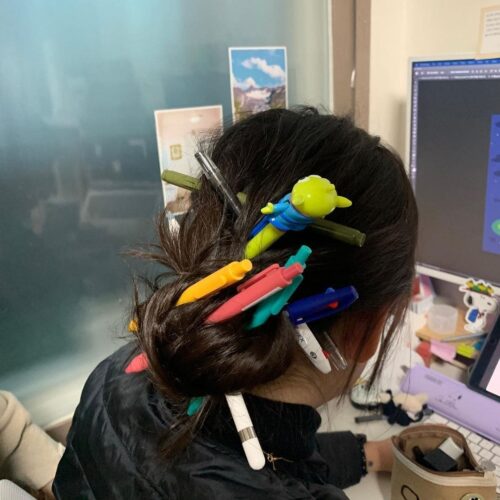 치크의 똥머리에 하나 둘 펜을 꽂으시더니⠀