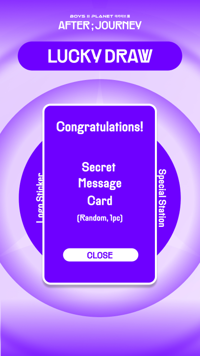 글로벌 아이돌 오디션 프로그램 ‘보이즈 플래닛’ 아카이브 전시에서 제공된 개인 맞춤형 랜덤 ID 카드 콘텐츠 입니다. 관람객은 선택지를 통해 자신의 성향에 맞는 멤버 카드를 랜덤으로 매칭받고 손글씨 메시지 카드 굿즈를 획득하며 팬덤 참여를 유도합니다.