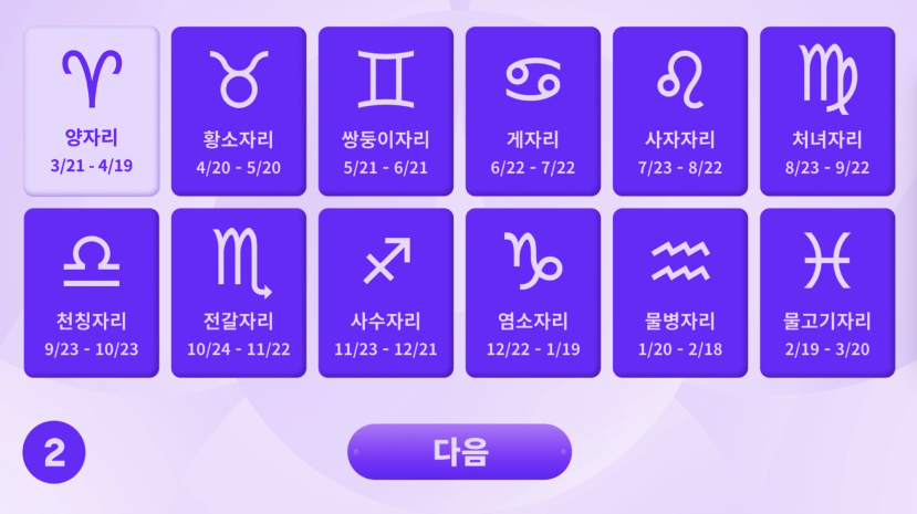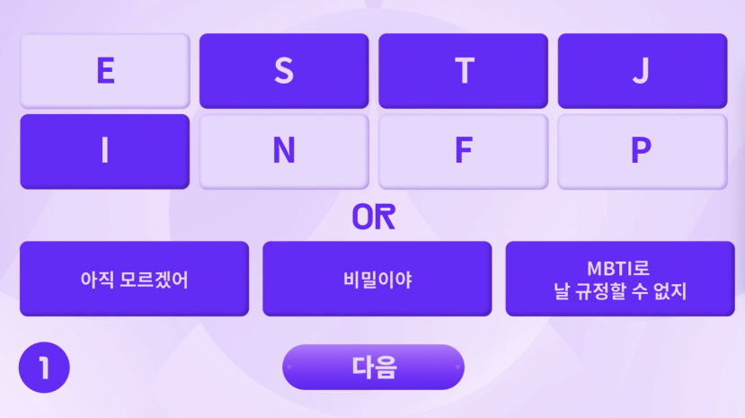 간단한 선택지로 구성된 성향 확인 과정이 체험의 시작이자 랜덤 매칭의 씨앗이 되어 결과에 대한 기대감을 형성