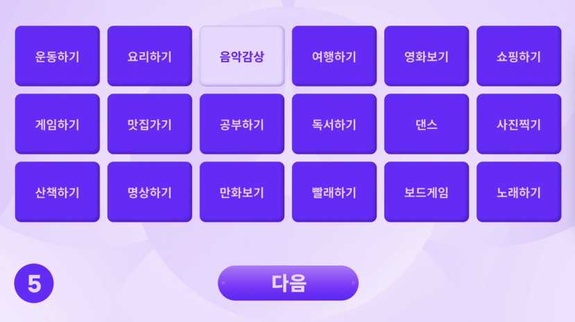 ▪︎ 성향 선택형 질문 인터랙션