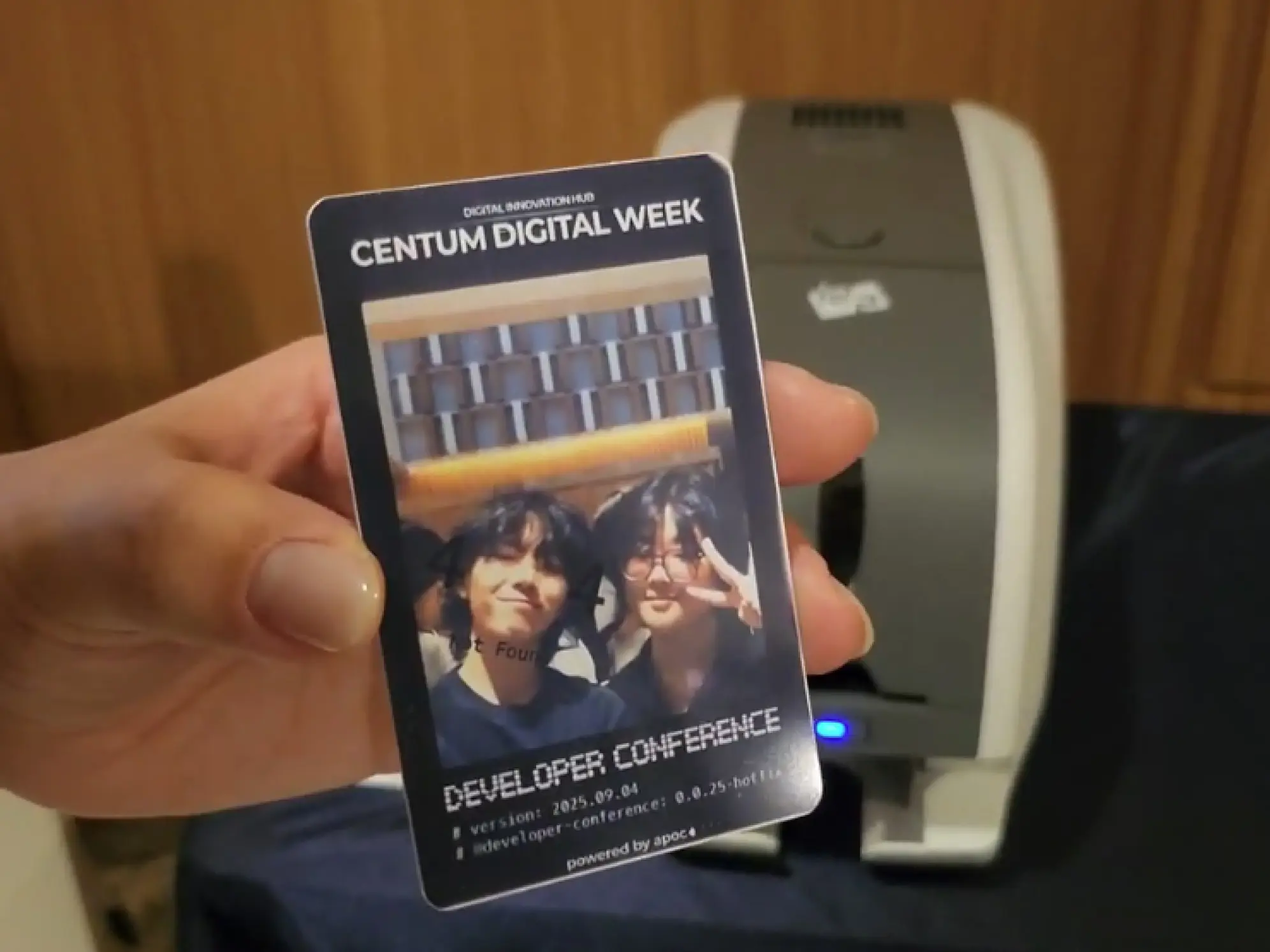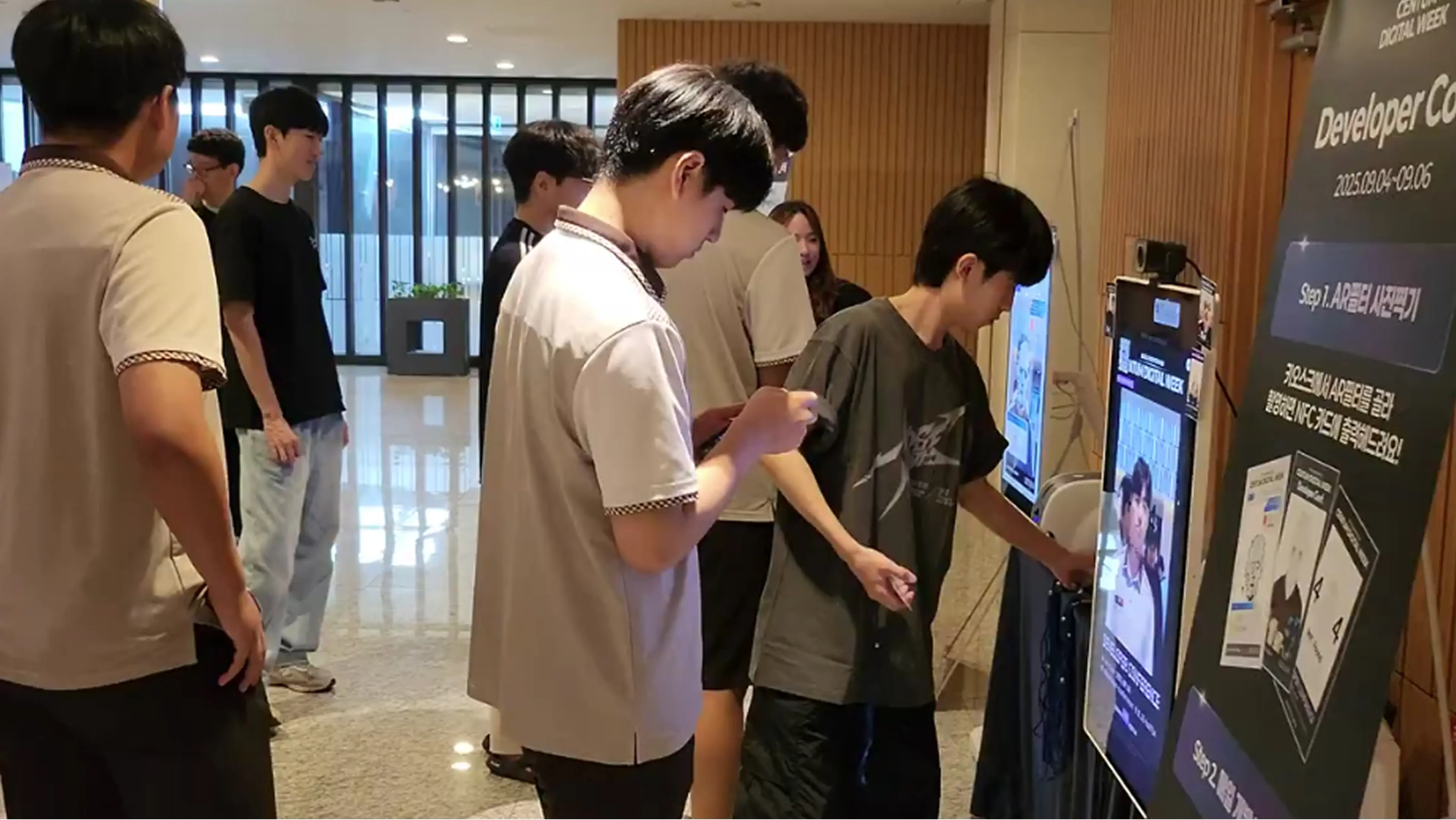 입장 키오스크에서 AR 필터로 사진을 찍고 NFC 카드에 즉석 출력해 단순 이름표를 넘어 디지털 연동형 기념 굿즈로 완성