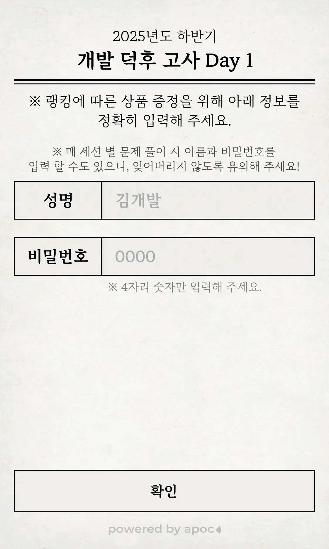 참가자는 입장 키오스크에서 AR 필터 촬영 후 NFC 명찰을 받고, 이 명찰을 태그해 매일 개발상식 문제에 도전합니다. 덕후고사는 컨퍼런스 세션 전후와 쉬는 시간마다 QR로 문제가 공개되어 일정 자체가 참여 리듬이 되며, 11문항 전체 정답자 중 최속 1위에게 애플워치가 수여되는 구조로 설계했습니다.