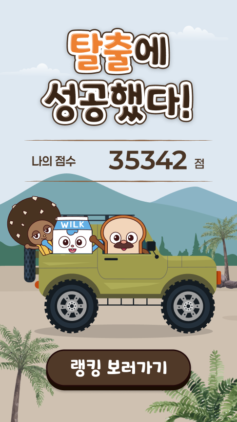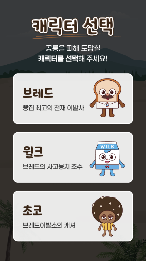 브레드이발소 캐릭터가 공룡에게 쫓기는 상황을 미션으로 제시해 어린이가 즉각적으로 게임 목표를 이해하는 구조