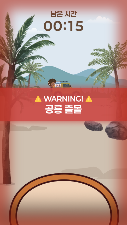 어린이 관람객은 캐릭터와 함께하는 공룡 탈출 미션을 통해 전시를 단순 관람이 아닌 능동적 참여로 경험합니다. 짧은 플레이 타임과 직관적 인터랙션이 많은 관람객이 자연스럽게 참여하게 만들며 전시 부스에 지속적인 활기를 불어넣도록 설계했습니다.