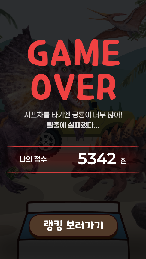 경남 고성 공룡세계엑스포 ‘브레드이발소 특별전’에서 운영된 부저 버튼 게임 키오스크 콘텐츠 입니다. 관람객은 제한 시간동안 버튼을 연타해 캐릭터를 공룡의 추격에서 탈출시키는 미션형 미니게임이며 쉽고 직관적인 참여형 체험을 즐길 수 있도록 구성되었습니다.