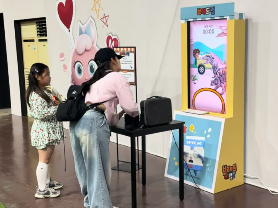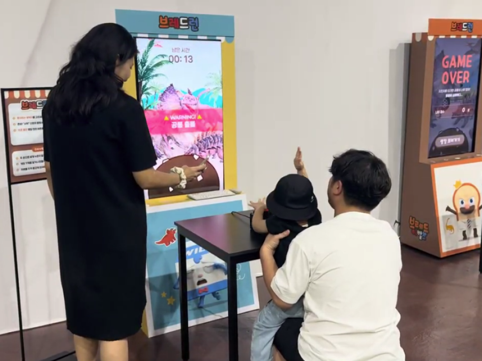 고성공룡세계엑스포 ‘브레드이발소 특별전’에서 브레드이발소 캐릭터가 공룡 추격에서 탈출하는 미션형 부저 버튼 게임 키오스크를 기획·운영했습니다. 공룡 세계와 브레드이발소 IP를 결합한 스토리 콘셉트로 어린이와 가족 관람객 모두가 즉시 이해하고 참여하는 전시 체험 활성화 콘텐츠를 구현했습니다.