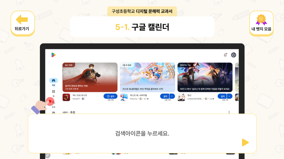 학생은 다양한 인터랙션과 반복 학습, 부가 콘텐츠를 통해 디지털 리터러시 역량을 실생활에 적용할 수 있도록 설계되었습니다. 웹·태블릿·모바일 모든 환경에서 작동하는 멀티 디바이스 인터페이스로 어떤 학습 환경에서도 체험이 끊기지 않도록 구성했습니다.