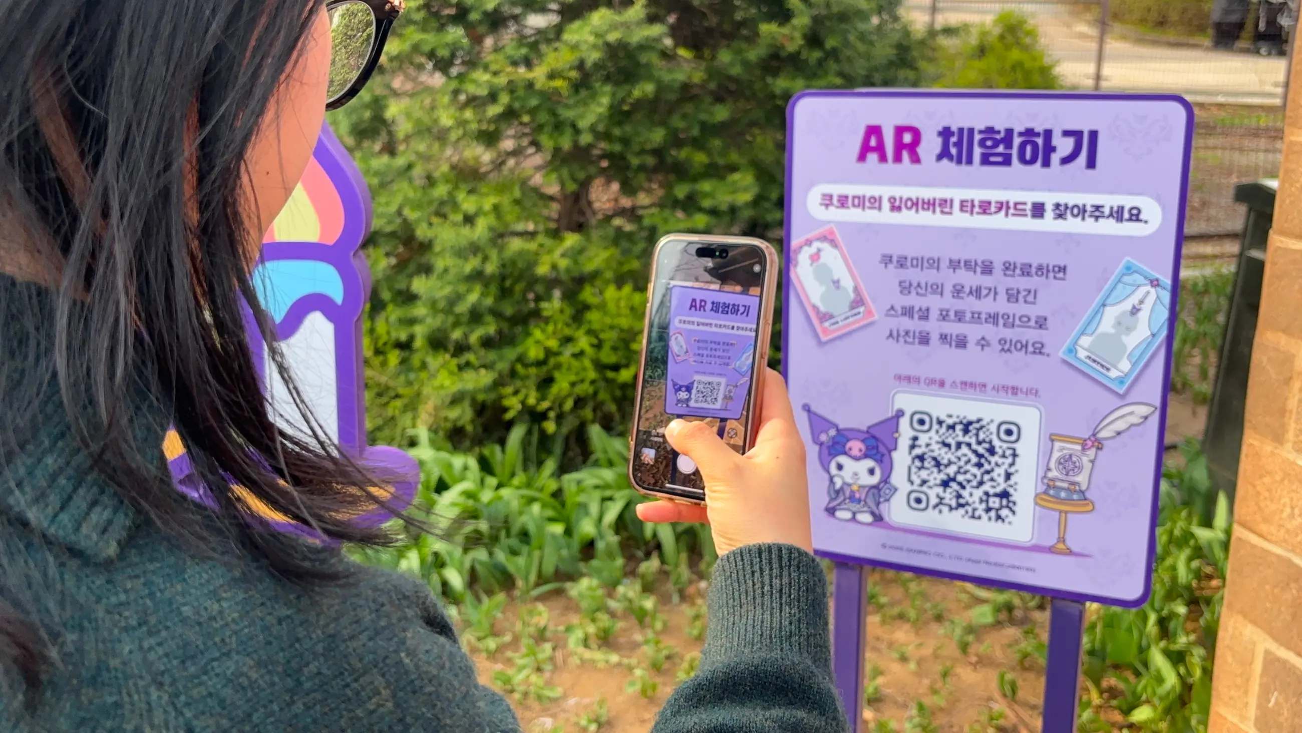 쿠로미 세계관에 맞춘 AR 타로카드로 오늘의 운세를 직접 뽑는 Z세대 감성 맞춤 개인화 체험 제공
