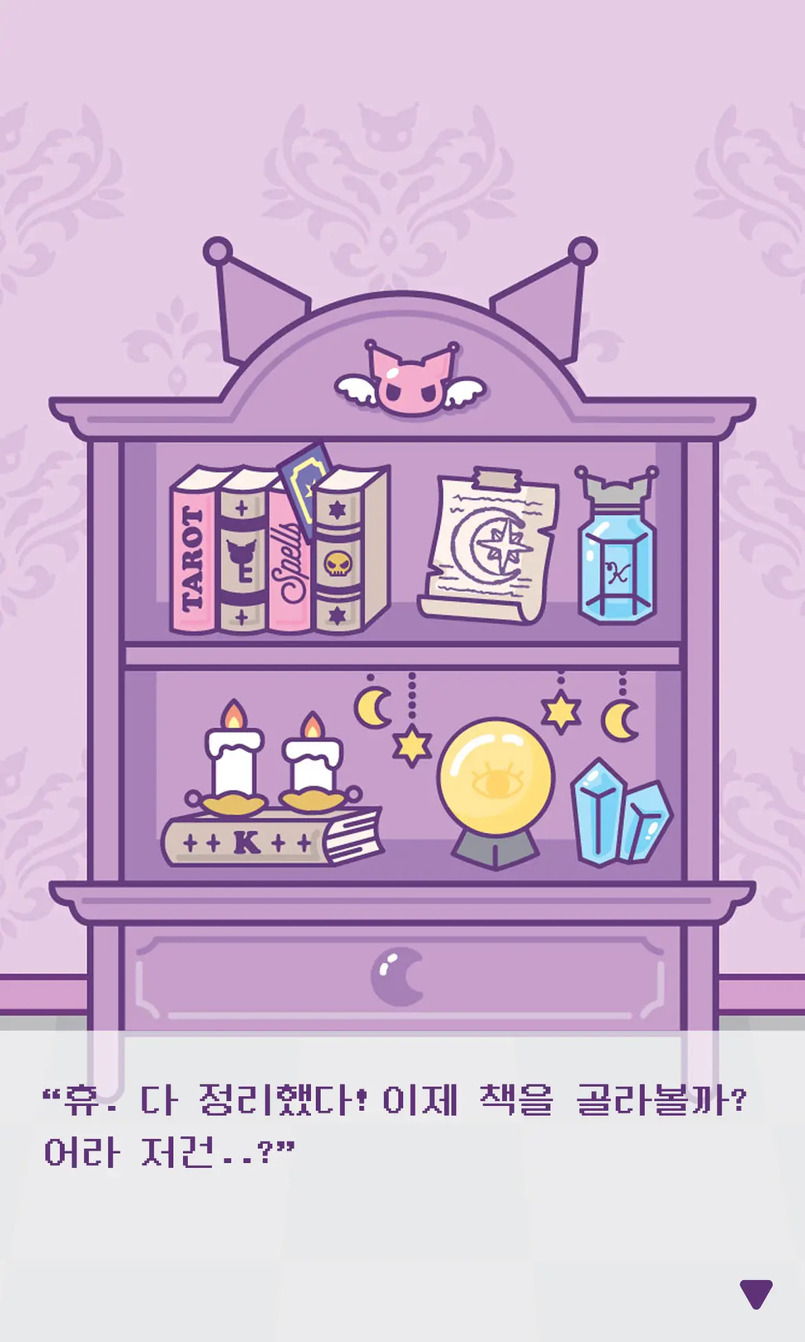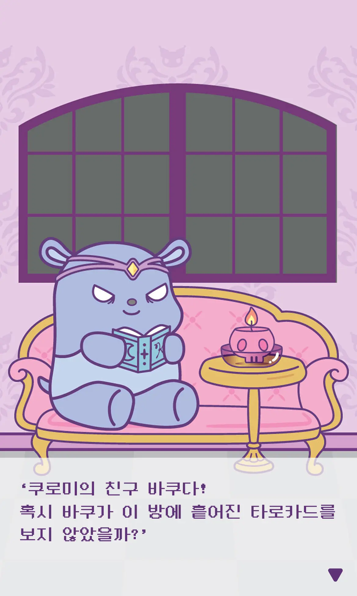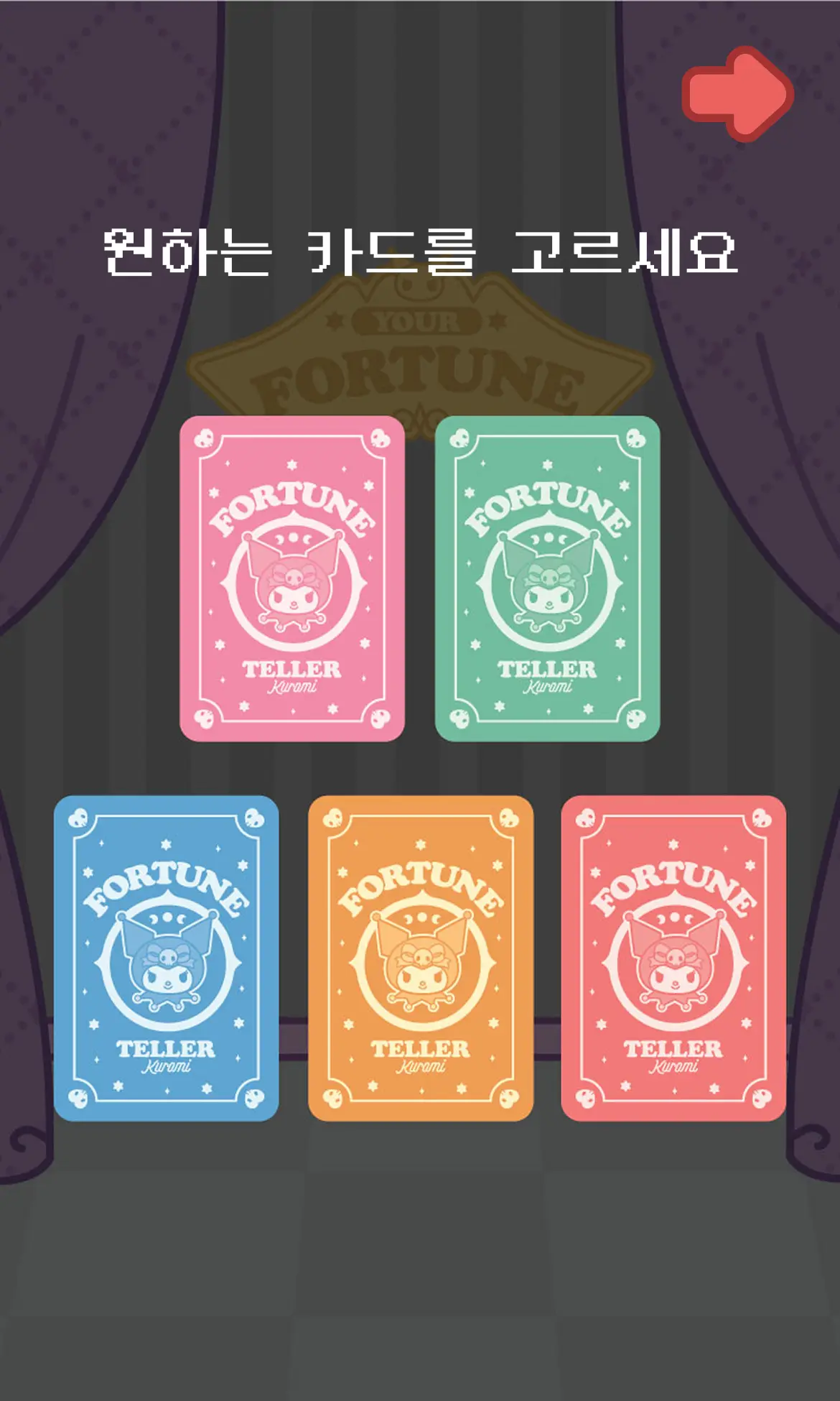 쿠로미 세계관 디자인 타로카드로 오늘의 운세를 직접 뽑고 캐릭터별 개인화 메시지를 확인하는 Z세대 감성 콘텐츠