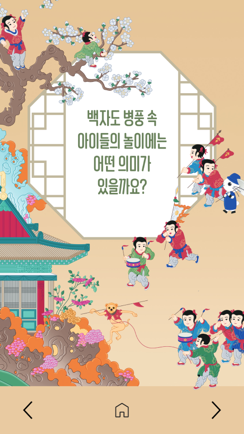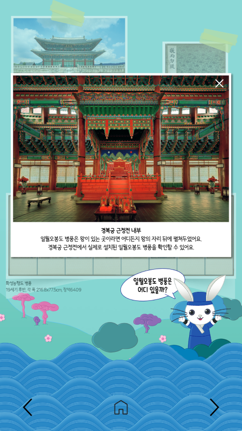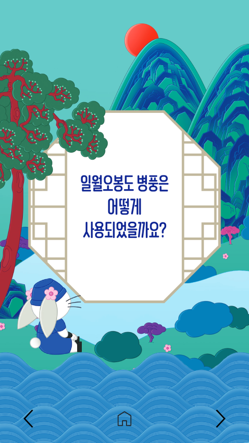 텍스트와 이미지가 리듬감 있게 교차하는 구성은 마치 실물 병풍 앞에서 설명을 듣는 듯한 감상 경험을 제공합니다. 또한 부드러운 페이지 전환과 직관적인 내비게이션을 통해 관람 흐름을 방해하지 않으면서도 콘텐츠 몰입도를 높였습니다. 이러한 구조는 전통 회화를 단순히 읽는 정보가 아니라 감상과 학습이 함께 이루어지는 디지털 문화 콘텐츠로 확장합니다.
