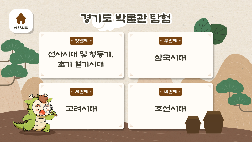 이 콘텐츠는 어린이들이 이야기 속 주인공이 되어 박물관을 탐험하며 역사와 문화를 배우도록 설계된 체험형 역사 교육 콘텐츠입니다. 참여자는 캐릭터와 함께 유물을 찾는 모험을 진행하며 단계별 퀴즈와 미션을 해결하게 됩니다.