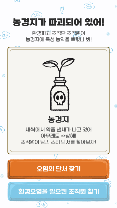 현장에 숨겨진 단서를 QR·AR로 스캔하며 영토를 오염시키는 환경 스파이의 위치를 추리하고 최종 검거하는 탐정 미션