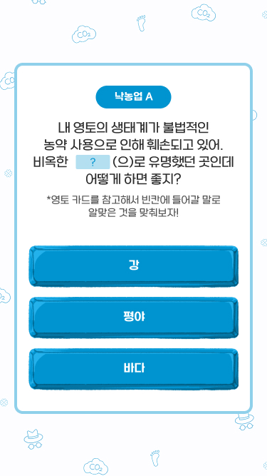 내가 뽑은 영주가 되어 영토의 환경세를 퀴즈와 거래로 줄여나가며 친환경 정책을 직접 결정하는 역할 몰입 체험
