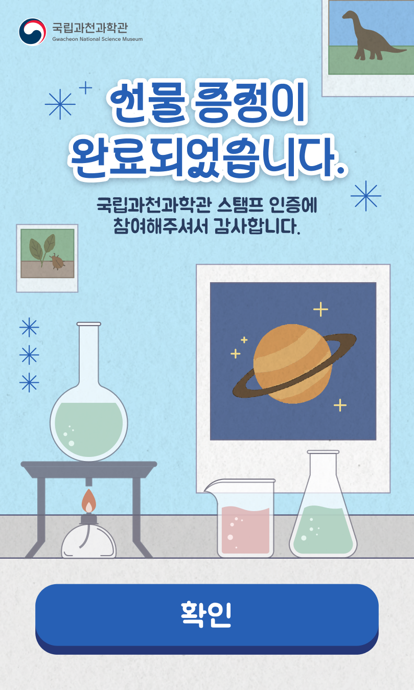 8개 스탬프 완성 시 ‘과학이 또옴’ 과학 실험 키트를 제공해 과학관 체험의 연장선상에 있는 보상 설계