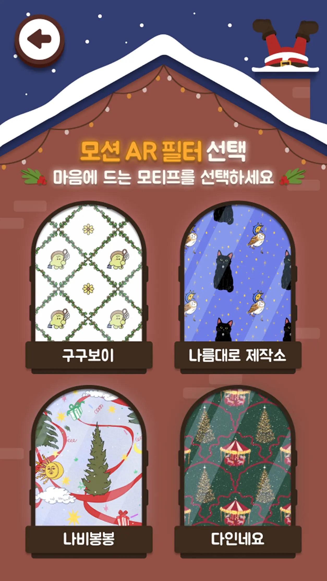 참여자는 직관적인 키오스크 인터페이스로 16명 작가 중 원하는 작가를 선택하고 그 모티브가 담긴 AR 필터를 실시간으로 체험합니다. 이미지와 함께 영상 다운로드까지 지원해 정적인 작품이 아닌 살아 움직이는 모티브의 리듬을 자신의 움직임으로 완성해 저장할 수 있도록 설계했습니다.