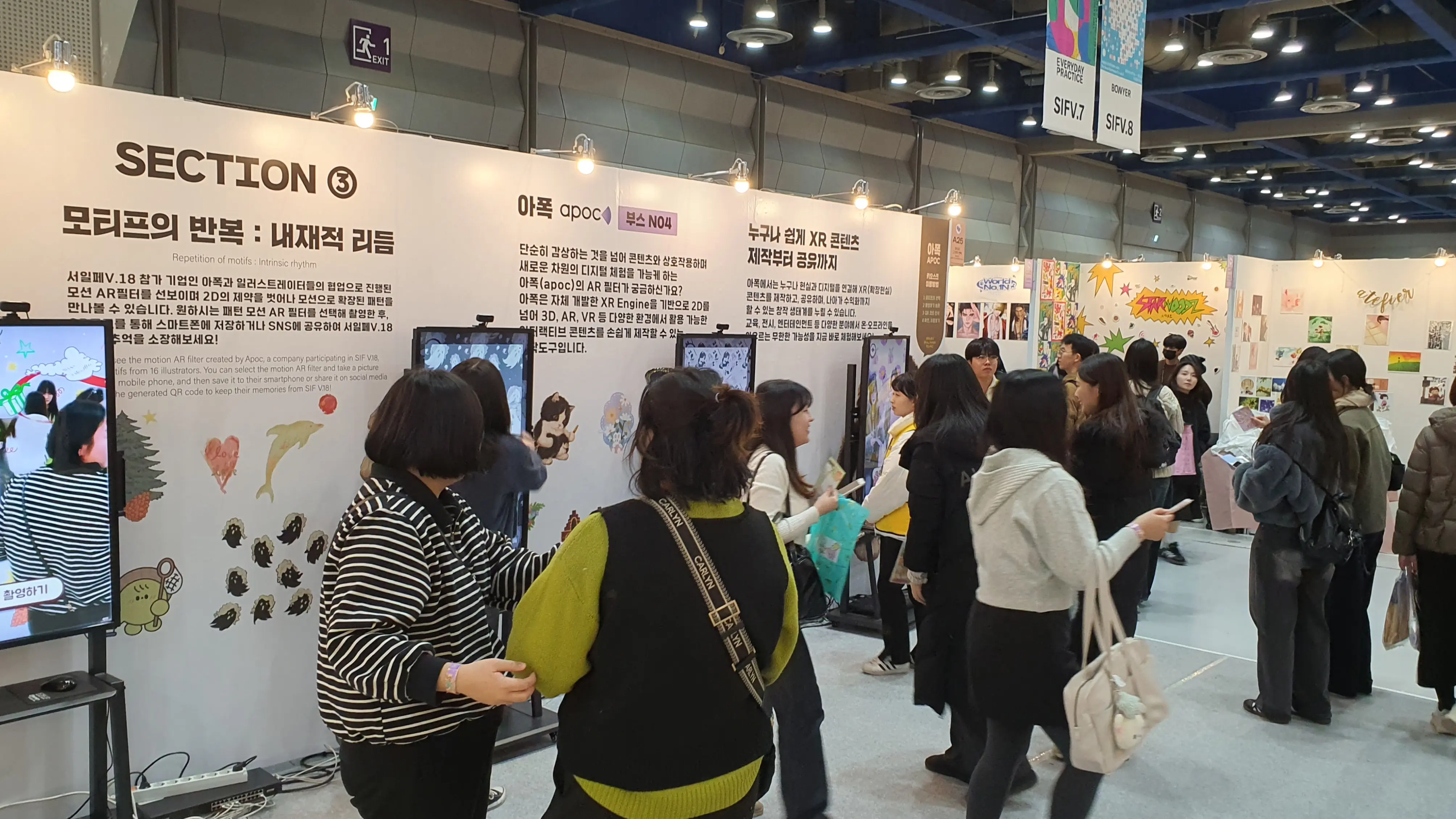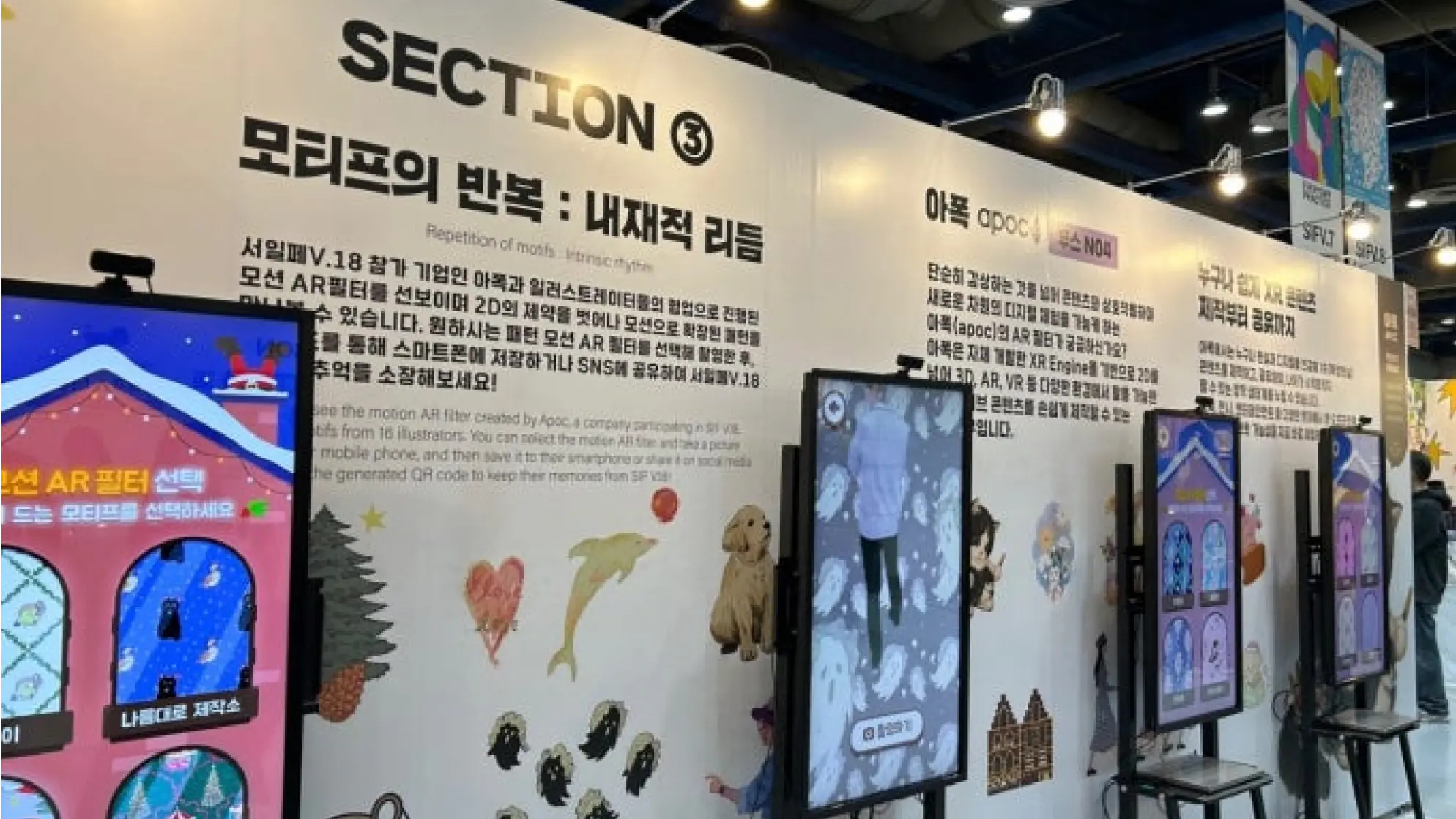 서울일러스트레이션페어 10주년을 기념해 ‘모티브, 그것의 반복 – 내재적 리듬’을 주제로 선정된 16명 작가와 콜라보한 AR필터 키오스크 콘텐츠를 기획·제작했습니다. 참관객이 작가의 독창적 모티브를 직접 체험하고, 일러스트 작가님과 관람객 모두에게 IP 활용의 새로운 방향을 제시한 전시 콘텐츠입니다.