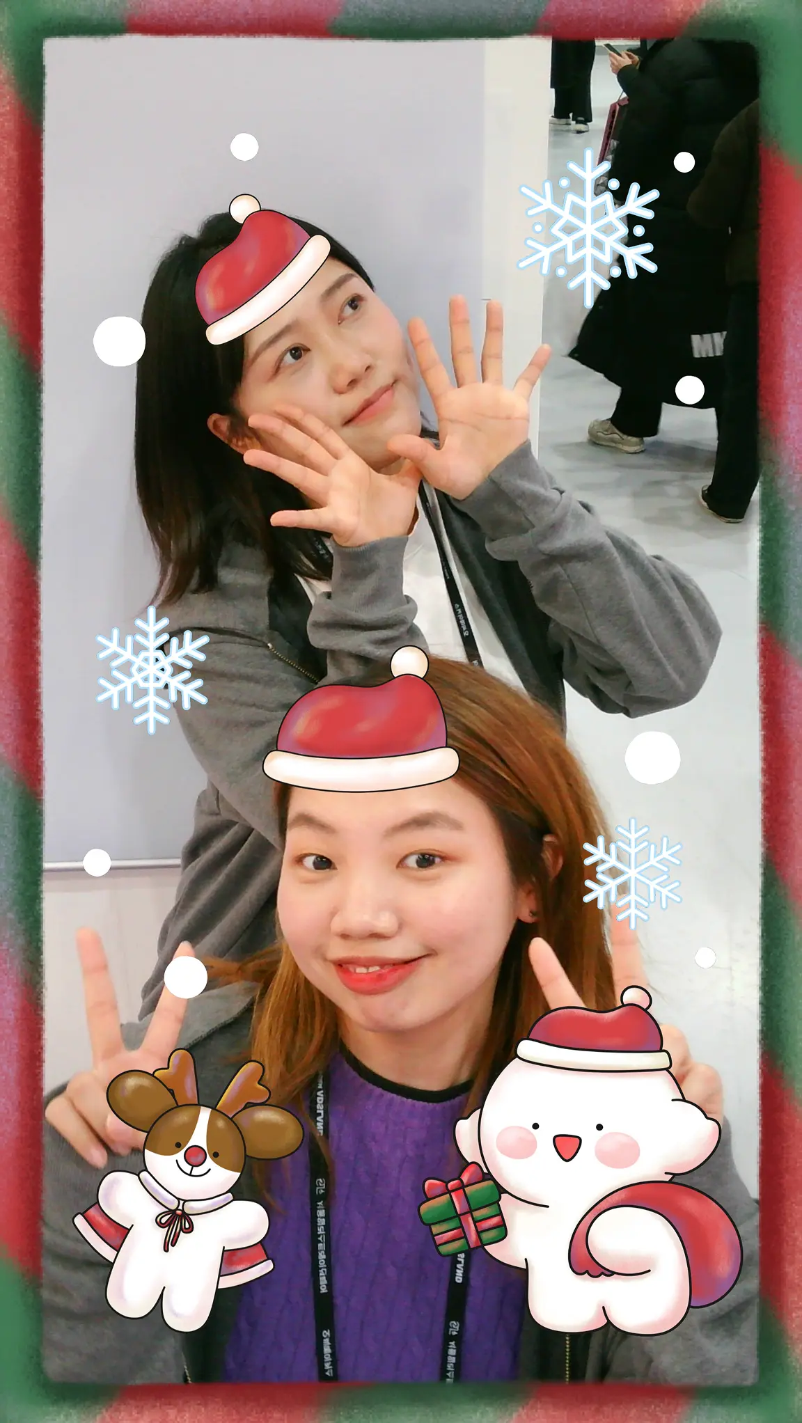 제16회 서일페에서 21인 참여 작가와 협업해 제작한 크리스마스 테마의 AR 사진 촬영 이벤트 키오스크 콘텐츠 입니다. 얼굴 인식 기반의 한정판 작가 콜라보 필터를 통해 방문객이 최애 캐릭터 IP와 함께 촬영하고 추억을 남길 수 있도록 설계했습니다.