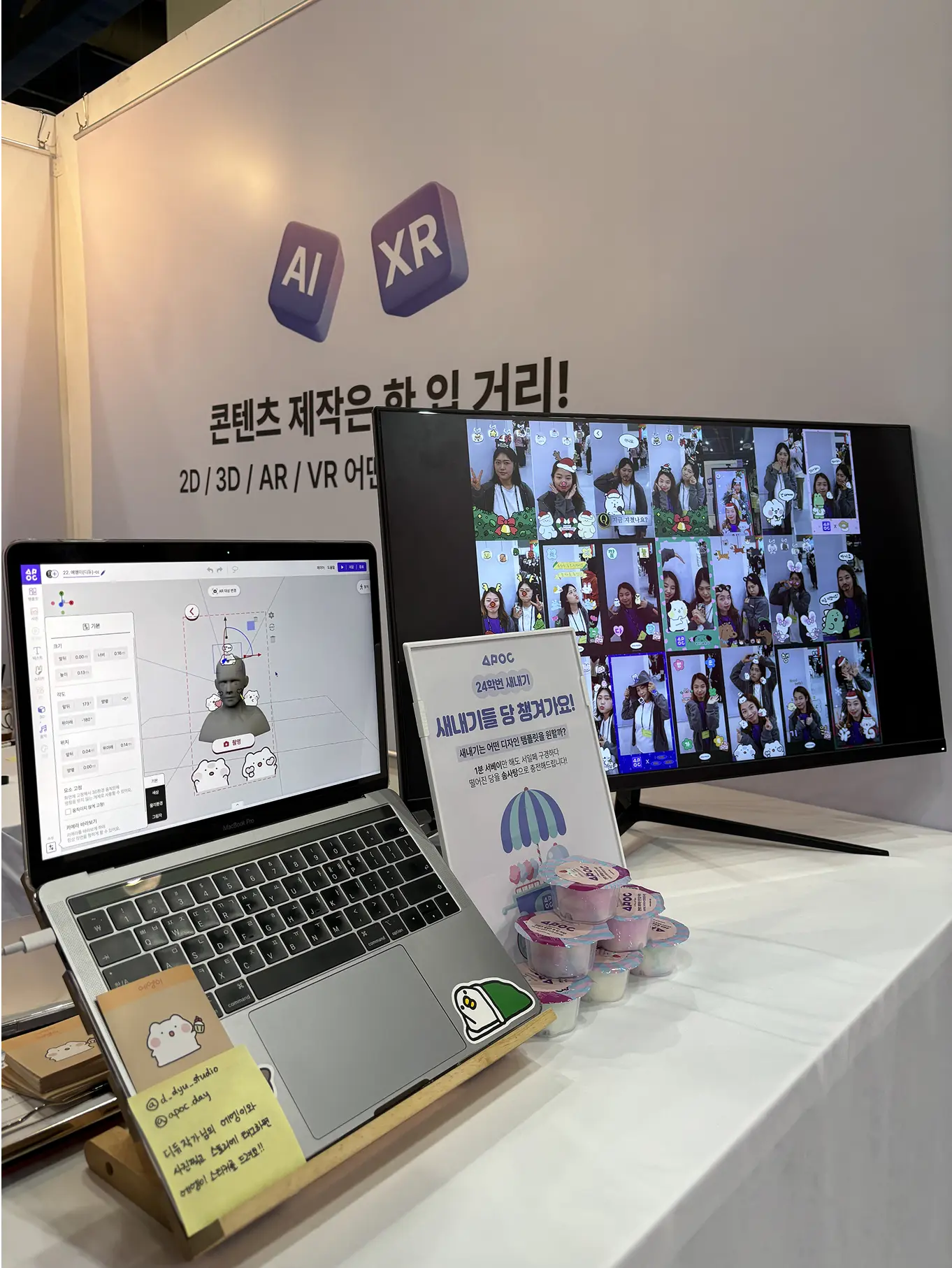 제16회 서울일러스트레이션페어 부스 이벤트로, 21명의 참가 작가와 콜라보한 크리스마스 테마 AR 필터 키오스크를 기획·운영했습니다. 작가들의 고유한 일러스트를 AR 필터로 변환해, 관람객이 최애 캐릭터와 함께 추억을 남기는 ‘apoc 사진관’을 구현했습니다.