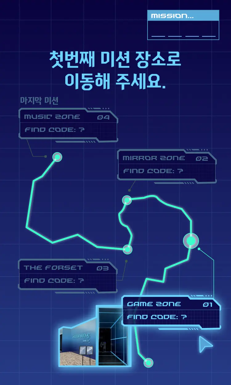 각 존에서 멤버의 메시지와 단서를 발견하며 다음 공간으로 이어지는 목적 있는 탐색 동선 설계